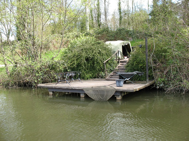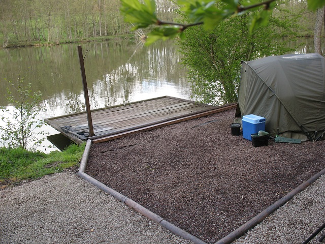 The fishing is from one bank only, there are two double swims and a single that could be used as a double, but is a little tight. The bivvying area is gravel with a layer of stones over the top giving a nice clean area. Fishing is from platforms, hence a pod or stage stands are required.