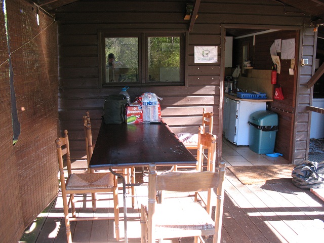 There is a cabin with an outside seating area (perfect for that all important BBQ) and an inside kitchen. The kitchen has everything that you need including pots, pans, cutlery, plates, cups, glasses, fridge freezer, microwave, toaster, hot and cold running water, sink, cooker, electric kettle, table and chairs and a satellite TV (only free channels). The TV was very welcome after a hard days fishing. Just the thing to relax to with a nice cold beer. There is also a toilet and shower.