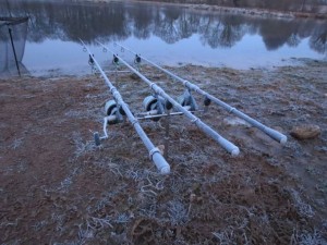 With Winter it is guess work when the carp feed, be it for just one hour in 3 or 4 days, but they do feed. If you have timed it right and/or Lady Luck is on your side, you may get a  bite or two, but more often than not the indicators remain silent. It can be mind numbing but as long as you have the right clothing and plenty of warm drink it can be pleasurable. The nights are long so it is short sessions for me, a flask and sandwiches and travelling light. Wrap up warm and watch the water.