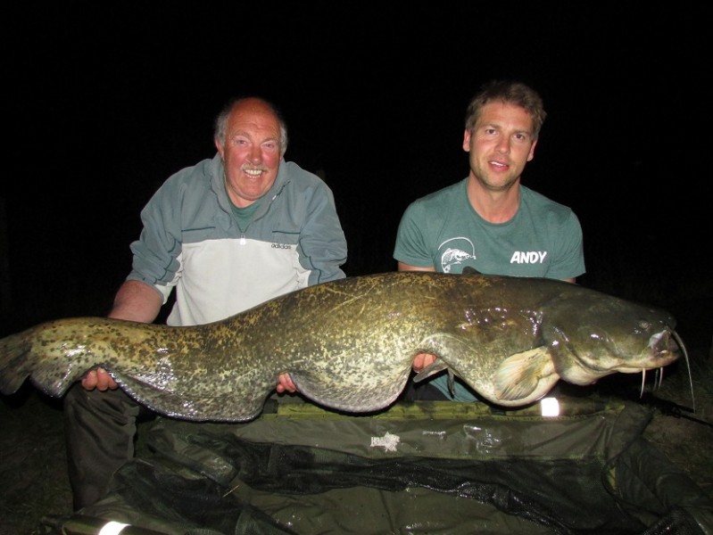 With Tony and Dave still having no joy in the double swim they decided to move on Sunday morning. Dave chose Jack’s swim for his final night, while Tony tried his luck in the cabin swim.  At 9.30pm that evening Andy was away again, landing a 64lb catfish after a terrific battle.