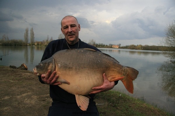 The early weeks of the season always produce big fish at Laroussi & 2010 was no different. The lucky angler this time was Paul Cummings, 44, from Stoke on Trent, who took this magnificent mirror of 71lb 12oz. It was caught from Le Chene peg at 10.20pm on Thursday, 1st April. Paul took the magnificent carp on a 14mm balanced curry boilie from a spot he’d baited for 4 days with Laroussi partyblend. His previous PB was 47lb11oz also from Laroussi.