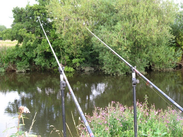 Not sure about “the rods high up in the air and tight lines to the lead / feeder for barbel”. Personally where possible i will always fish with the rods quite low (especially on smaller on rivers – this helps to get the line down quicker). After casting i pay out quite a bit of line to create a ‘nice soft bow’. This came about whilst fishing the Teme about 15 years ago. You could observe the fish in this clear little river and it was interesting watching their reactions to various baits and methods. They would clearly spook off a tight line (especially if they brushed up against it) whereas a slackish line was soft to the touch (like weed) and wouldn’t really bother them.