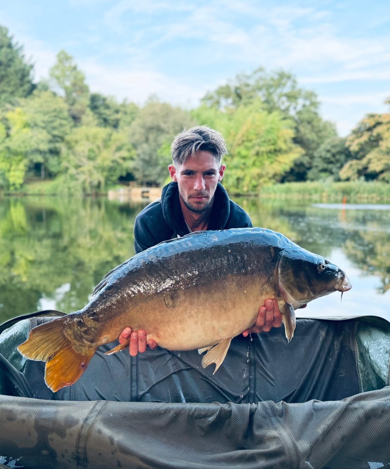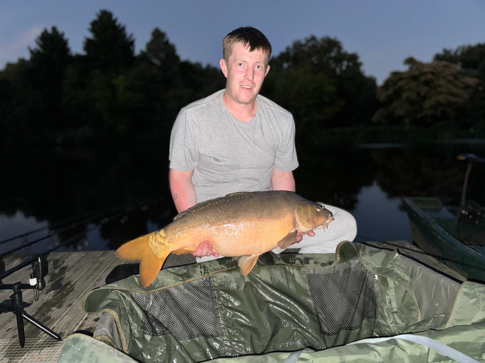 We caught 23 carp with an average of 27lb. We had 4x Doubles (inc Koi), 12 x 20s, 5 x 30s and 2 x 40s (3 40s landed but 1 repeat). Plenty of Tench and Roach on the float