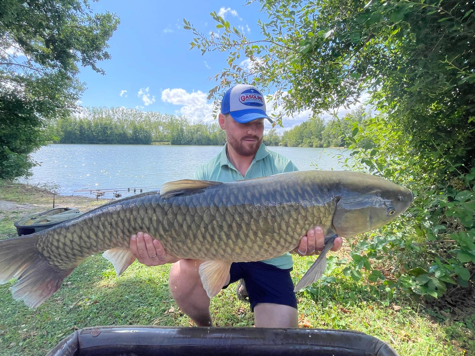 Good points... The carp are very hard fighting fish and some are in great condition... It's a stunning looking lake and has some nice features to fish too... Bad points... The big sturgeon is a pain as it's constantly getting hooked but snaps you off every time. I woke up a couple of mornings to find crayfish in my bivvy even found a couple on the road way behind the swims, definitely wrap your baits because there are thousands of them, swims need some sort of landing/releasing platform due to low water levels and rocky margins. The swim was littered with cigarette buts and bottle lids and burn patches from fires unfortunately for us when we arrived a french guy and his family had already arrived and set up in peg 3 without doing the draw or waiting for everyone to arrive for a walk around, he pretty much took up that half the lake with his bait boat, his 2 children were swimming and wading in and out of the lake which made the fishing hard for us as we was in peg 6 so all the fish spooked to the other side of the lake, I believe this could be a great lake but needs some TLC. The shower door lock is broken so couldn't lock the door, another guy was there with his daughter and the french guy walked in whilst she was showering so they felt uncomfortable and left early, 2nd time at Blue lake and shame to say it's gone downhill since my last visit 3 years ago *Angling Lines note* Thank you for your feedback. We have discussed your comments with the owner, he sincerely apologises for the issues you faced. The lock on the shower has now been fixed. If anglers encounter any problems in future, please let Sebastien or the Angling Lines team know and we will do our best to help.