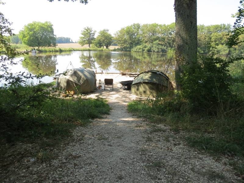 The lake in the woods is around 15 acres in size with only 2 double swims, both well capable of fitting 2 bivvies and all the paraphernalia required for a weeks carp fishing in France.