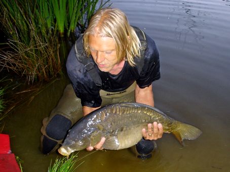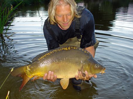 After a quiet night on Lake Lauren, George managed to get the first fish in the net after a fifteen minute battle at around 6am when immediately his second rod tore off. The two fat mirrors were taken on Quests Rahja Spice and Fruity Trifle, both coming from the shallow reeds, weighing in at 31lb 14oz and 27lb 12oz.