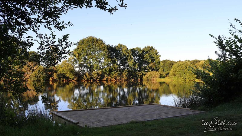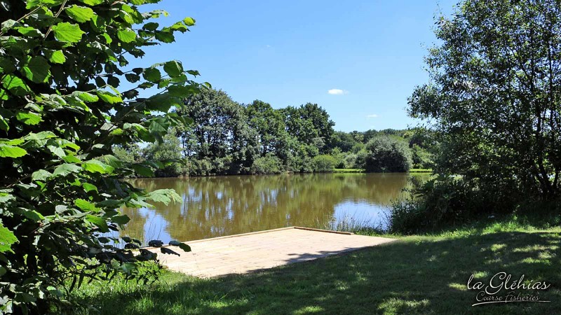 Swim 3. Double size pontoon can accommodate two anglers. Gives access to The Gorsebank, mid-water, The Sunken Streambed and margins. Two anglers are able to cover a large area of the lake from here. Depths to 6 feet.