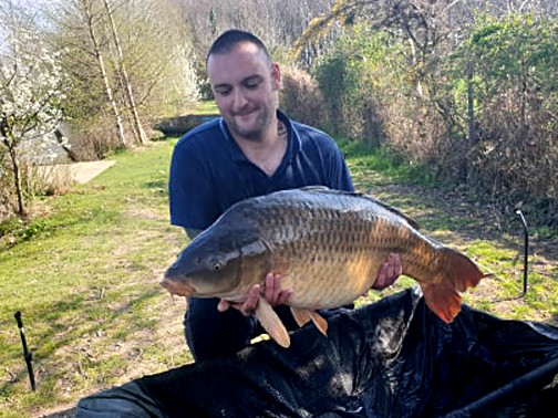 Despite enjoying some lovely sunshine this week, the deeper waters are still quite cold, with the carp spending much of the days up in the shallows where the water is a little warmer. Using winter baiting tactics and observing where the carp were showing, Saul sent the bait boat out with 2 hair-rigged Ouest Malibus on a bed of La Gléhias Parti-Mix about two thirds up the Gorse Bank to a promising looking cave under the gorse. Saul’s natural angling instincts paid off as the spot came up with the goodies and he landed the gorgeous record breaking 47lb Common. Good to know, we don’t believe this is the same Big Common that Saul caught last year. We’re calling this “ABC” aka “Another Big Common”.