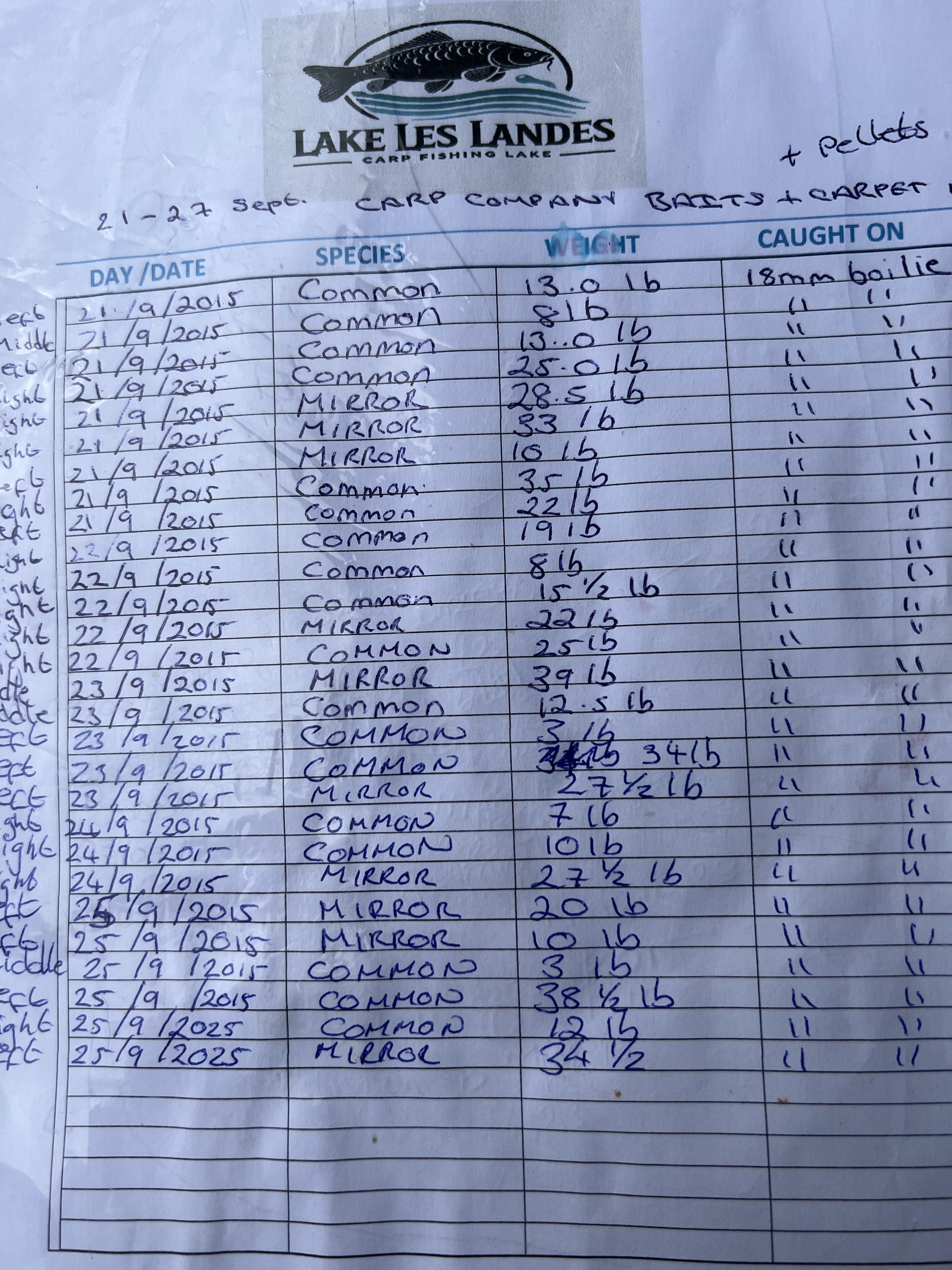 Fish seem a little moody following storm previous week and the cooler weather. Fished various spot with bait boat used snowman presentation over boiled and lake carpet feed.