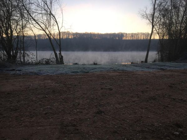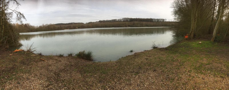 A visit to the lake on a very wet and wintry day to see the Vasseur brothers working very hard to clear fallen trees and cut back and widen swims ready for the coming season. The lake is full to the brim and looking good.