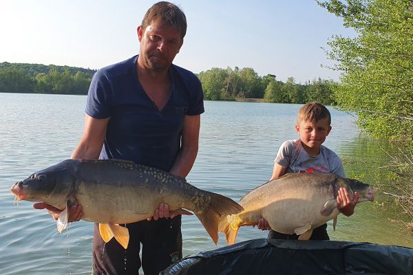 Lake owner Sebastien and his son fished 3 days on Lepinet this week, using strawberry snowman with maize and pellet. The fish are certainly feeding!