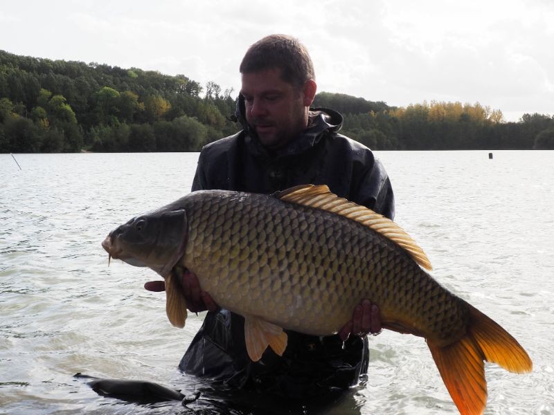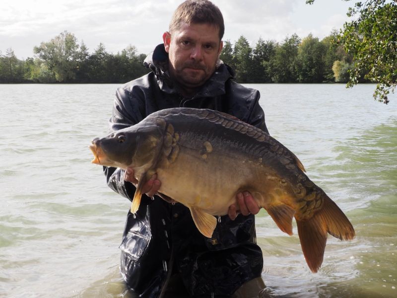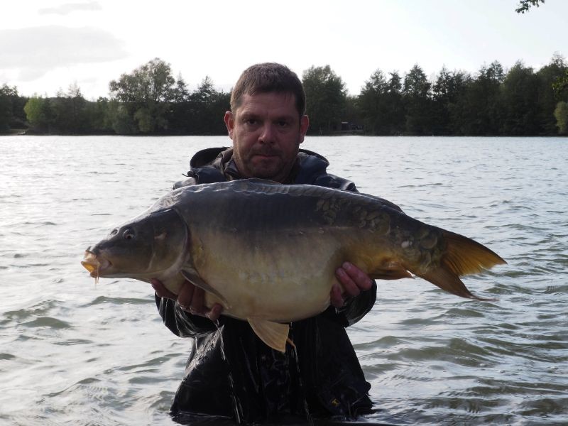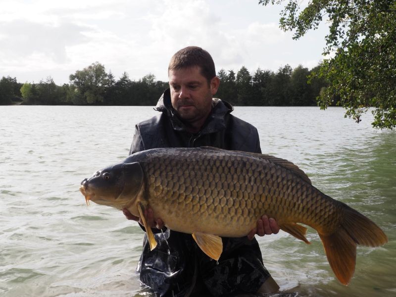 I fished on swim 9, using a snowman rig and boilie only approach of nash scopex squid. I took 40kg with me as we know these big fish get hungry. Works every time on French venues. Fishing at range would be important and it was around the 150yrd mark. Basically fish out to the middle of the lake. I had been at the lake for 3 days and already landed 6 fish, when it ripped off for the 53lb'er.