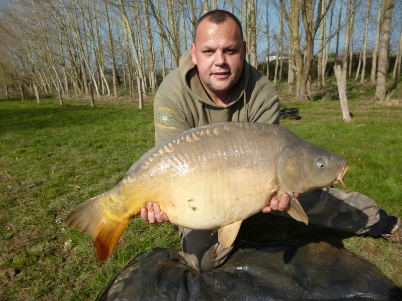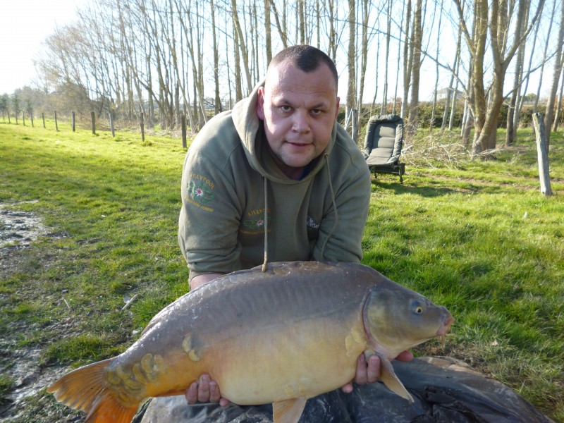 I fished over friday and saturday while working on the lake, Friday resulting in a blank, but i did manage to spot a few fish, saturday with traps placed a little better i managed 4 carp to 40-6 and one lost in my 12 hours. Great start to the season!!