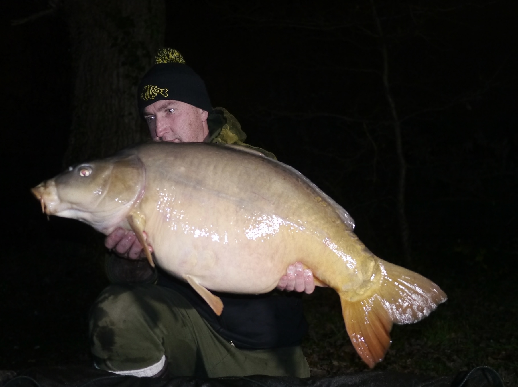 I booked on as a non exclusive at very short notice, upon arrival there were a couple of local anglers on in peg 1 and 3 so I opted for peg 5 (which is where I had in mind in any case). Sunday morning I lost a very big fish, would have almost definitely been the fish of the trip as it turned out ... GUTTED!! Almost to the min 24 hrs later I had a small common of 21lb then they must have left me as peg 1 produced a couple of fish so I decided on Thursday after it had been vacated for 24 hrs to move into peg 1 ... As i was leaving peg 5 I had a 24lb mirror, now the dilemma weather to move or not ... I decided to continue with the move to peg 1 and it appeared to have paid off ... I had a 33lb mirror that evening followed by a 17lb fully scaled mirror the following morning, Then the final morning as I was just about to think about packing away I had a take and slipped the net under a 36lb mirror that looked stunning in the morning winter sun. I didn't manage to get into any of the big girls on this trip, In fact Mehdi said he didn't think anybody ever caught 3 fish under 30 in a week .... But for February I am pleased with 5 fish, its the figure I had in mind before I went ( just much bigger ) ..... Next time I will get one of the A team!!