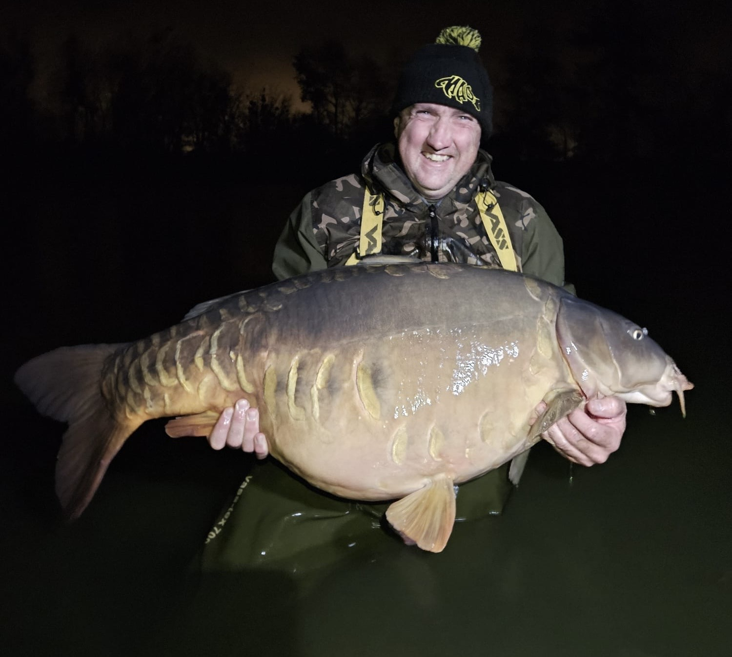 A really busy and productive week with 34 carp landed, 2 lost. With 3 x PBs broken! A haul topped by a ‘crazy big fish Thursday’ which included a 47 mirror, the fox common at 67 and then …… the long common at 76lb 4oz for Roy. A day we will never forget!