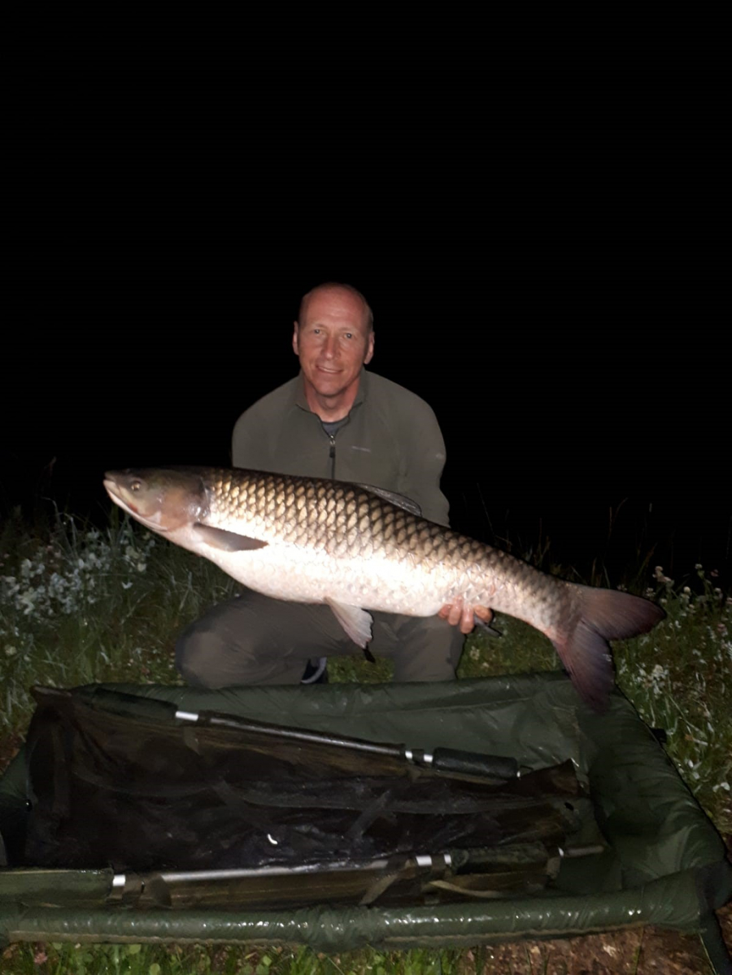 15 carp in total biggest fish 42lb Grass carp, 41lb mirror and a 40lb common, these were also backed up with several upper thirties, smallest mirror 18lb. Two koi were also caught, biggest 22lb.