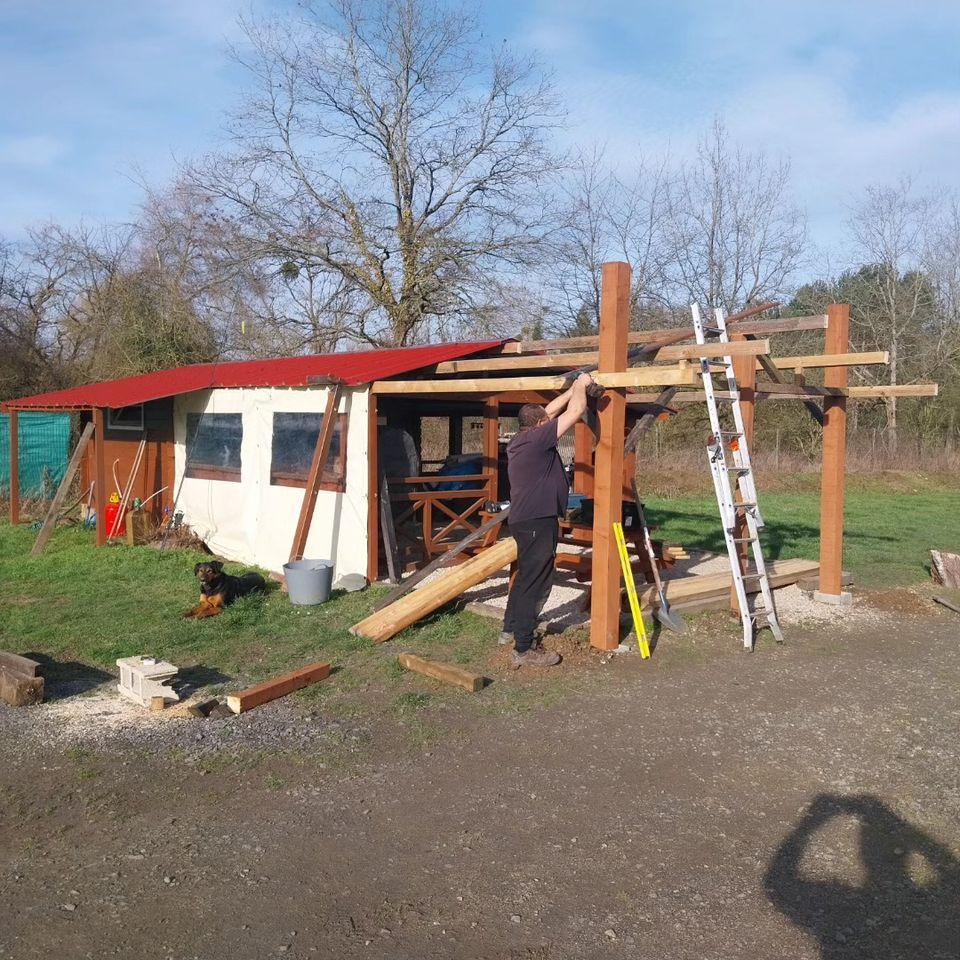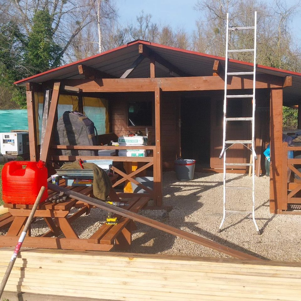 We have been working on the cabin extension to allow for solar panel fitting soon! And not forgetting a few upgrades to the terrace area for warmer social nights.